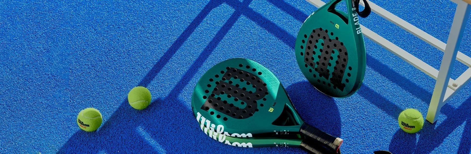 Discover the Wilson Blade Padel Rackets collection at Racquet Point, engineered for players seeking explosive power, precision, and comfort. The Blade V3 series, including models like the Blade Pro V3, Blade V3, and Blade LS V3, caters to intermediate to advanced players with its innovative teardrop designs and lightweight options. Featuring advanced technologies like Carbon Fiber Face, Fiberglass Weave, Firm or Soft EVA Foam, and Sharp Hole Technology, these rackets deliver superior spin, stability, and durability. Whether you're an aggressive attacker or a developing player, the Wilson Blade collection offers the perfect balance of performance and feel to elevate your game on the court.